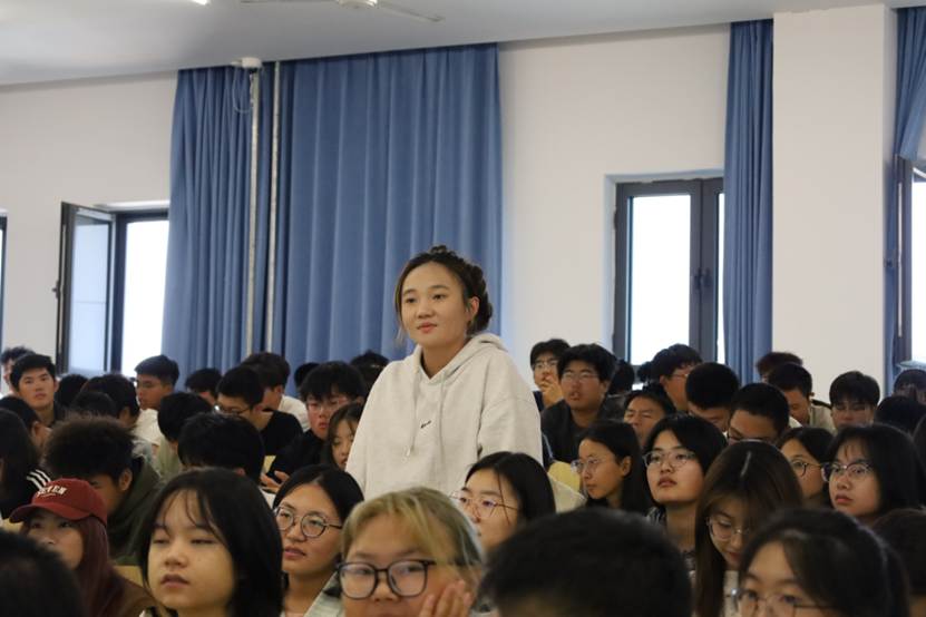 新生“化小水”现场向老师提问,与老师交流。