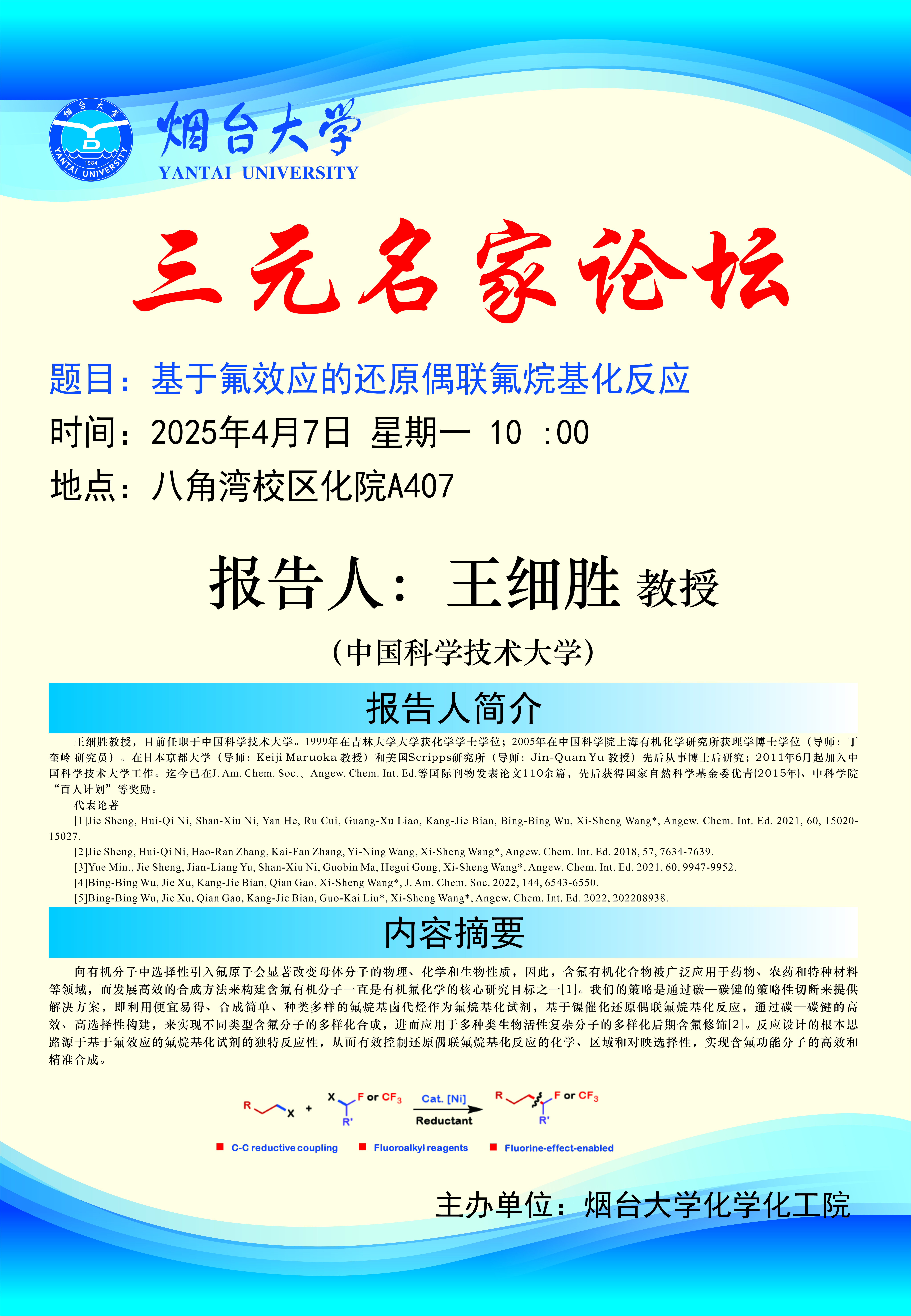 三元名家论坛(化院)丨《稀土配合物功能材料研究》,主讲:唐瑜教授