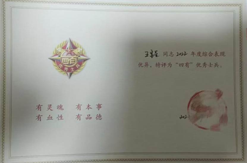 王富星在部队所获荣誉