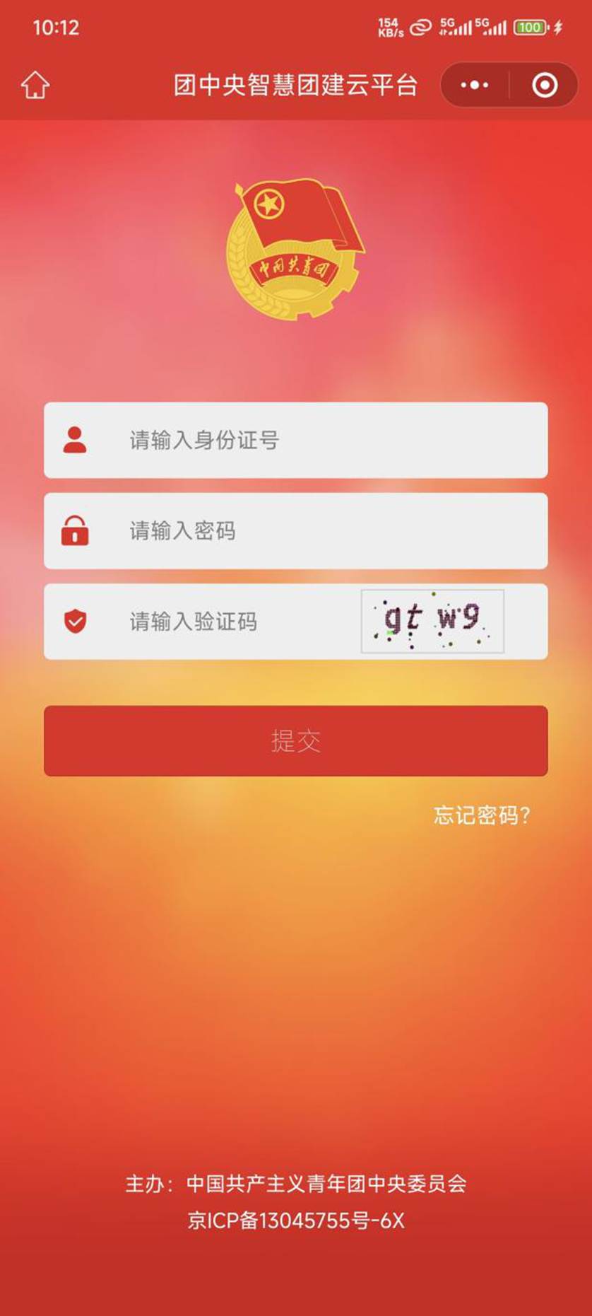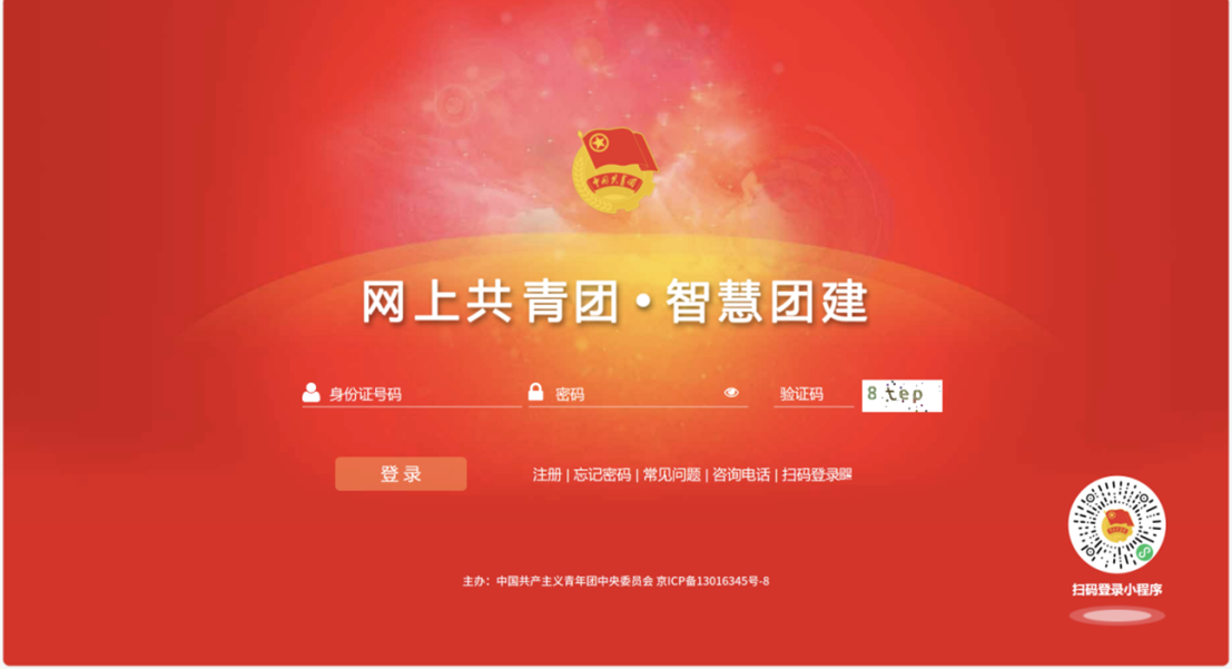 (若忘记密码或密码错误,联系原公司团支部管理者生成【密码重置码】,拿到重置密码验证码后打开系统首页选择“忘记密码”,按照页面提示操作即可)