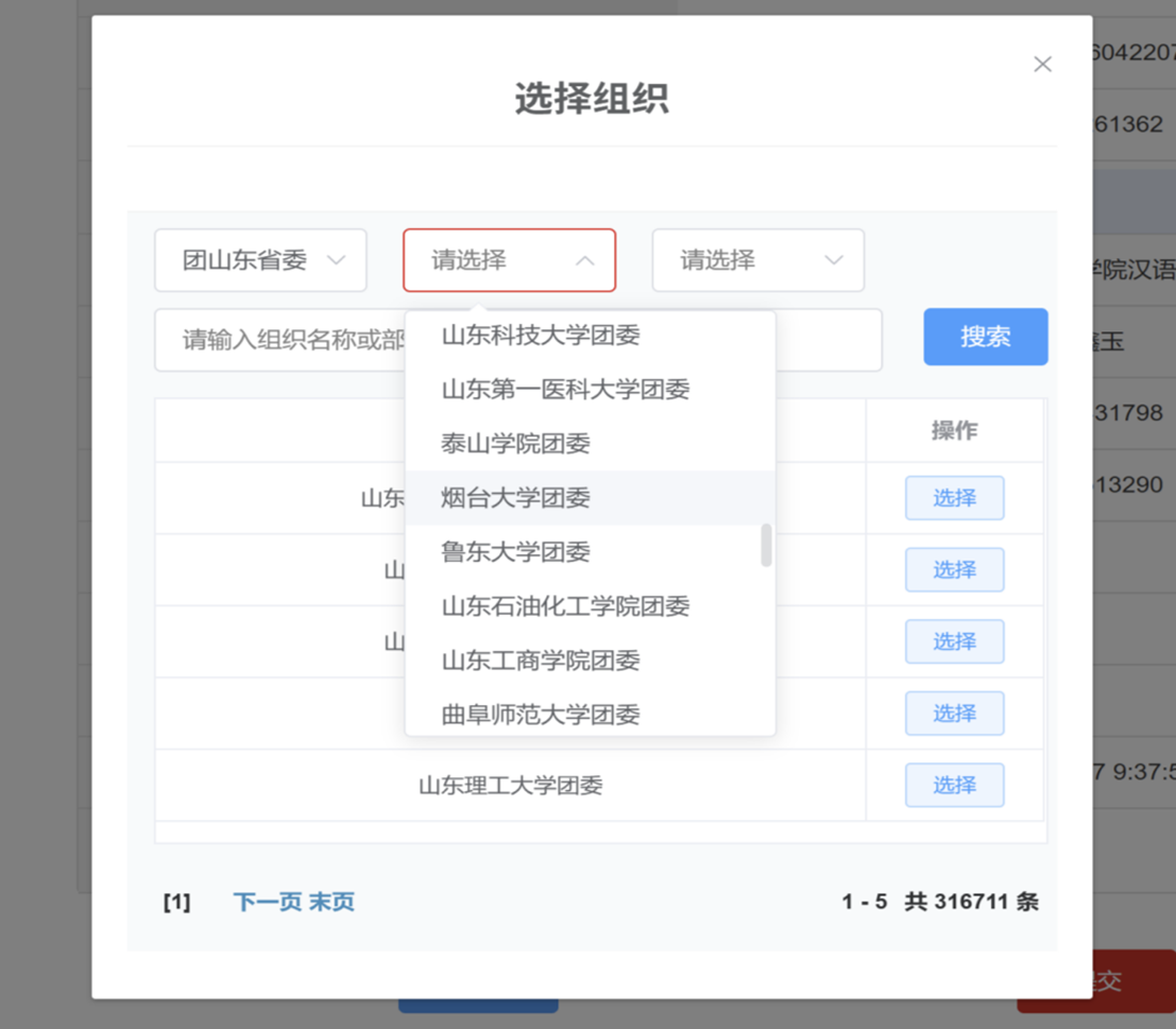 (4)选择“团山东省委”后,在第二栏处选择“古天乐代言太阳集团团委”。