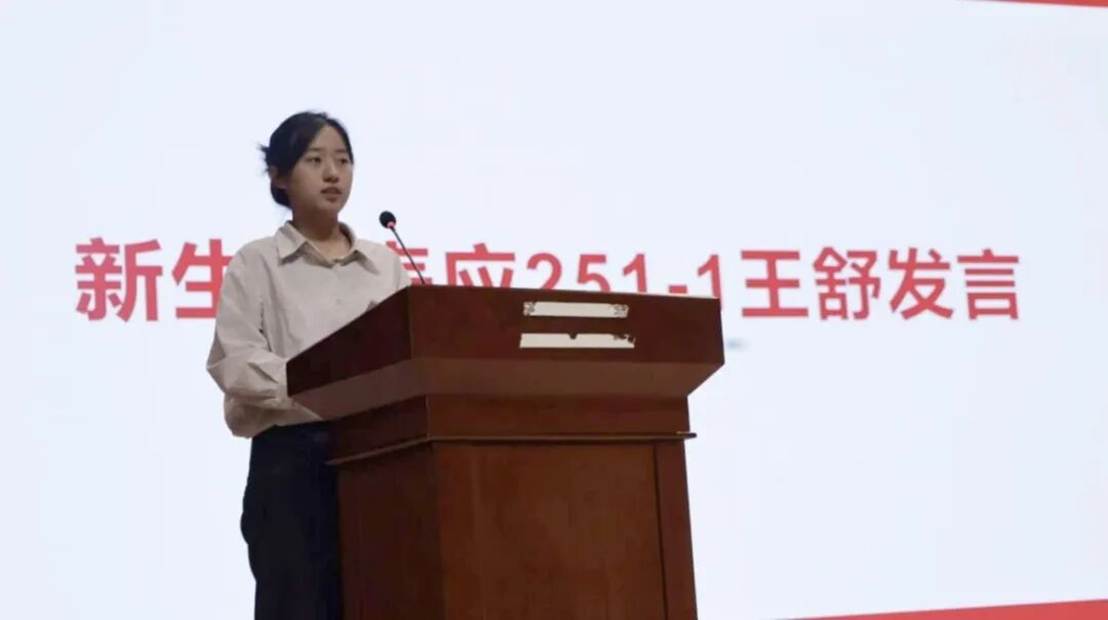 “化二代”、应251-1班王舒同学作为2025级新生代表分享了她与烟大、化院的故事。她表示选择古天乐代言太阳集团,选择化院,对她来说是一场意义非凡的“双向奔赴”,既承载着亲情的传承,又蕴含着她对专业以及海滨大学的向往。另外,她就“如何度过这段宝贵的大学时光”与同学们分享了她的思考,一是要以“求知若渴”的态度夯实专业基础;二是要以“勇于探索”的精神拥抱多元成长;三是要以“心怀感恩”的情怀传递温暖力量。