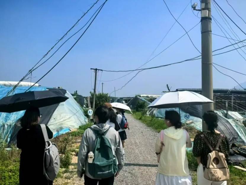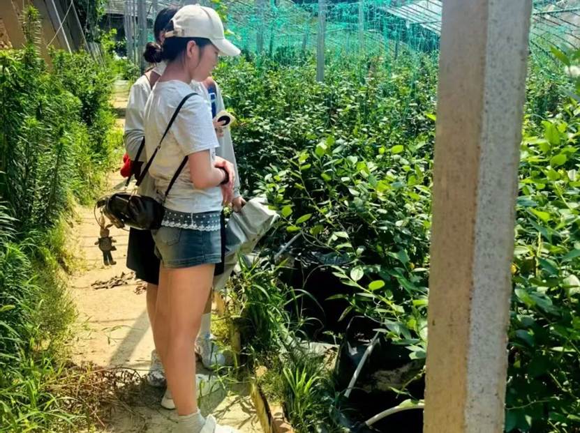 7月12日清晨,天行队队员走进烟台市泰运蓝莓基地,晨露还挂在蓝莓果粒上,队员们便跟着基地工作人员学起了采摘技巧。“要轻捏果蒂旋转,不能拽,不然会损伤果皮”,队员们边记边练,指尖很快沾染上蓝莓的紫黑色汁液。白天,他们记录不同成熟度蓝莓的硬度、含水量,观察阳光直射对果实霉变的影响;傍晚,跟着运输车前往售卖点,车厢里温度计的数值每半小时被记下一次,颠簸中蓝莓表皮的擦伤痕迹成了重点标注对象。“原来采早了酸涩,采晚了易烂,这时间点比做化学实验还讲究”,队员的感叹,让“保鲜”从课本概念变成了沾满泥土的实践。