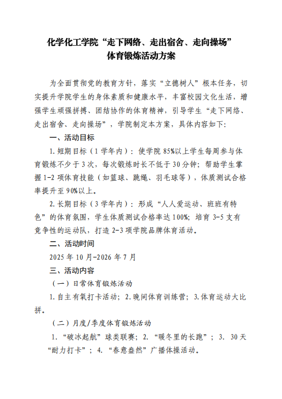 接下来,公司将以此次运动会暨启动仪式为起点,扎实推进“走下网络、走出宿舍、走向操场”体育锻炼活动方案,围绕方案内容,正向激励,充分调动同学们参与体育锻炼的主动性与积极性,持续营造全员参与、热爱运动的良好氛围,助力同学们在运动中强健体魄、凝聚力量。