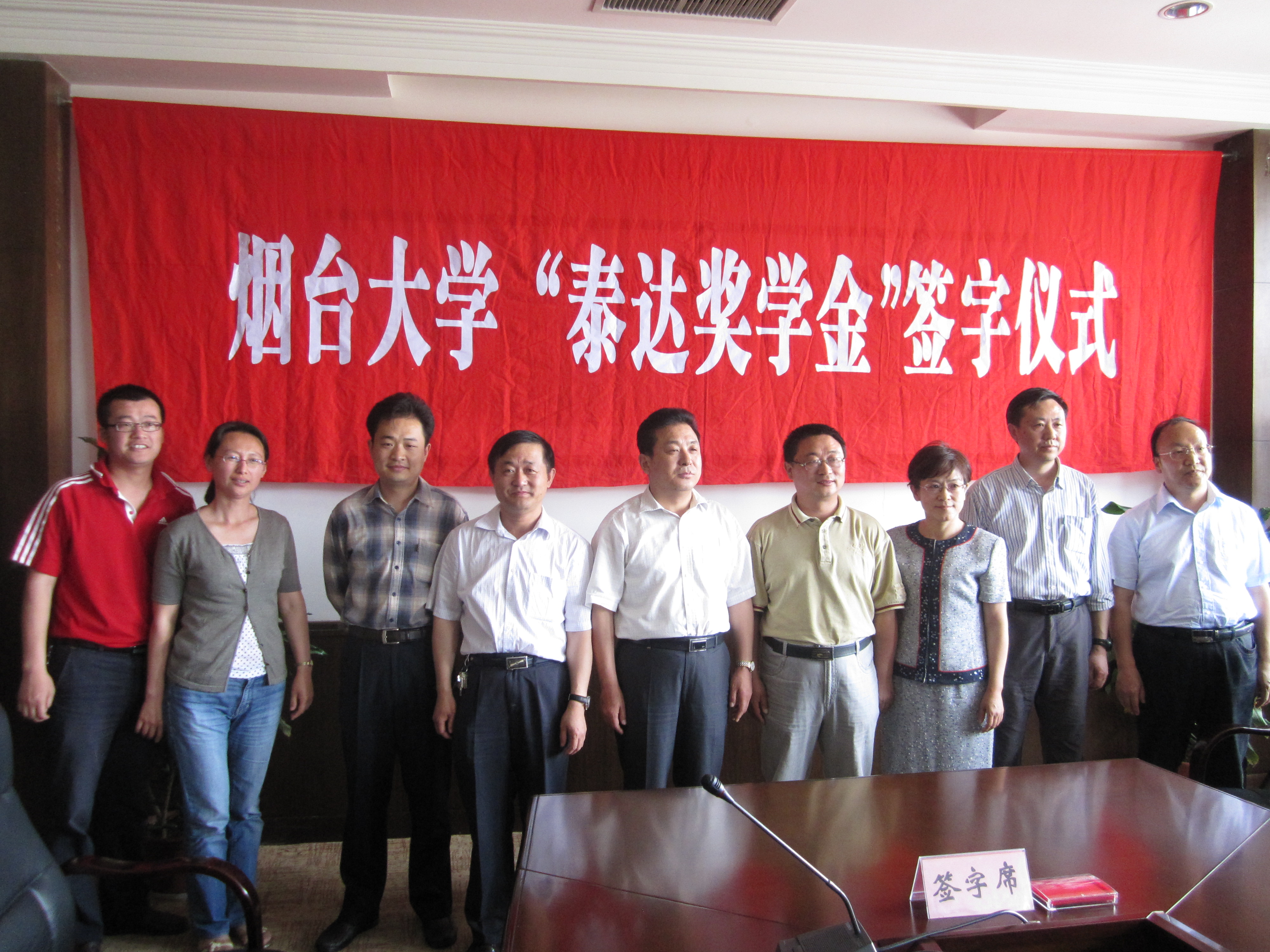 孙祥斌副董事长代表公司致辞,他对烟台泰达集团宋华西董事长一行的到来表示热烈欢迎,他指出:第一,公司非常欢迎泰达集团到校设立奖学金,同时也非常感谢集团为公司员工提供的奖励和资助。第二,公司非常重视校企合作这项工作,一直努力为双方提供产、学、研、用等各方面合作的机会和条件。第三,希望公司员工能努力学习,饮水思源,以更好的成绩回报社会。最后,与会代表及员工代表一起合影留念。