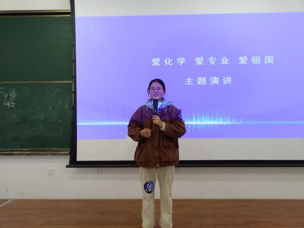 选手们进行“爱化学、爱专业、爱祖国”主题演讲。