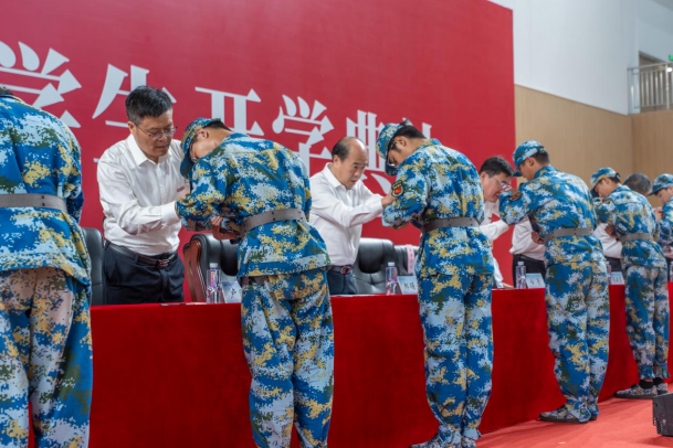 应241-6班马泽宇同学代表2024级本科新生向公司领导、老师、军训教官以及学长学姐表达了衷心的感谢!他说,同学们要始终牢记“坚韧团结,乐观奉献”的军训精神,在未来的大学时光中,坚持做到“在困难中不屈不挠,在挑战中寻找自我”。