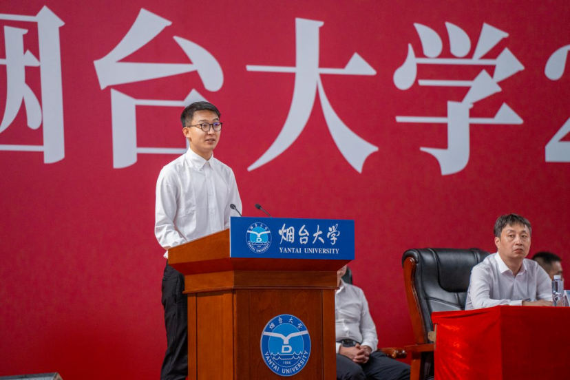 优秀员工代表、万华化学集团股份有限公司助理运行工程师仉辰在入学仪式上表达了对母校烟大及化院的深切感恩与眷恋。他说,烟大化院拥有很多热爱员工、也深受员工敬爱,全身心投入教学、专业级科研水平过硬的优秀教师,化院秉承北大清华优良传统和教育精神,为青年学子营造了优良的学风、教风和院风。他说,学弟学妹们选择烟大化院是人生的幸运,这里将是他们踏上宽广求知之路的起点,也是领略知识与科研纯粹之美的殿堂。他期待每位学子都能在这里收获满满,成就非凡!