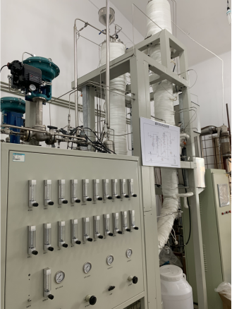 循环流化床装置由北京惠尔三吉绿色化学科技有限公司定制,该装置主要由反应器、再生器、提升管和待生剂输送管四部分组成。流化床反应器高1.8 m,反应段内径为0.064 m,再生段内径为0.080 m,沉降段内径为0.21 m,催化剂装填量大于5 kg。低碳烷烃脱氢反应中,原料气经质量流量计后进入预热炉预热,随后由脱氢反应器底部进入流化床反应器,与自上而下流动的再生剂逆流接触并发生反应,然后结焦催化剂进入待斜管,在待输气的作用下,经催化剂输送管送进再生器进行烧焦再生,再生催化剂通过提升管输送返回至脱氢反应器,脱氢反应后的气相产物可由反应器顶部进入后续分析仪器。