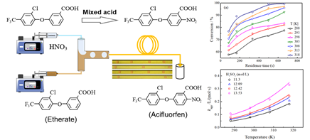 含氟二苯醚类除草剂具有广谱、高效、低毒、低残留等特点,已成为国内外除草剂的主流产品,市场前景广阔。当前,工业生产的核心工艺(硝化过程)多采用间歇或半间歇釜式反应器,其非均相、快速强放热的反应特性,导致过程安全性、产品品质及生产效率等面临较大挑战。
