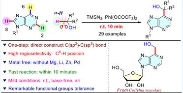 近日,公司孙凯副教授和鲁东大学于明武副教授两个团队合作,利用PIDA/TMSN3氢原子转移体系,共同开发了一种高度区域选择性的羟烷基化反应,在室温下使用醇作为羟烷基化试剂,在10分钟内合成 C6-羟基烷基化嘌呤和嘌呤核苷,反应无需金属、光照或者惰性气体保护。该研究成果发表于美国化学会的有机快报(Org. Lett., 2022, DOI:10.1021/acs.orglett.2c01680)。