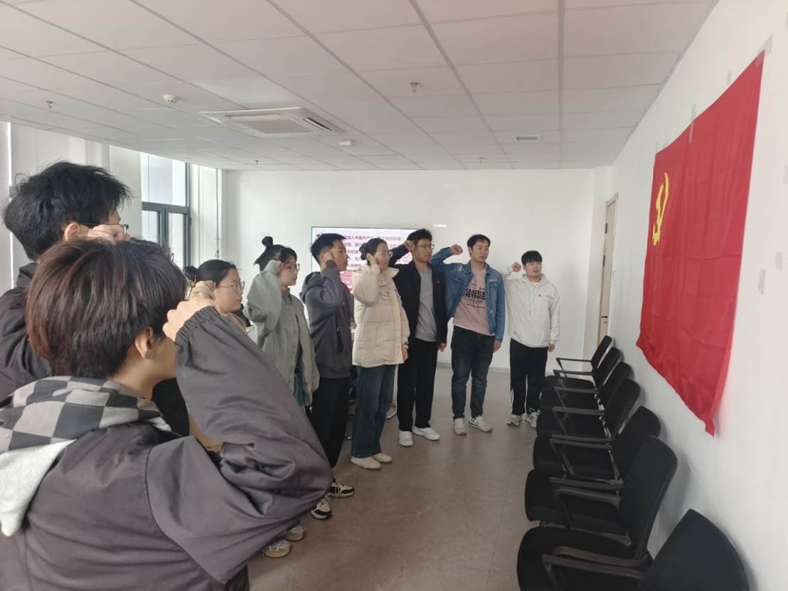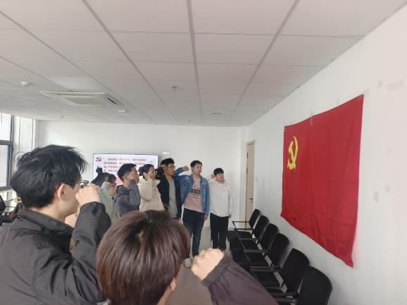 在活动的最后,支部党员同志重温入党誓词,这不仅是对党员政治身份的庄严提醒,更是将化学先驱的科学精神与共产党人的初心使命深度融合的重要载体。这是一场历史与现实的对话,让共产党人的初心使命与科学家精神在化学实验台上交相辉映。