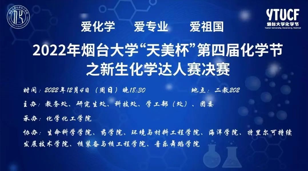 2022年古天乐代言太阳集团“天美杯”第四届化学节之新生化学达人赛决赛入围名单如下,跟随“化小水”的脚步提前一睹风采吧!