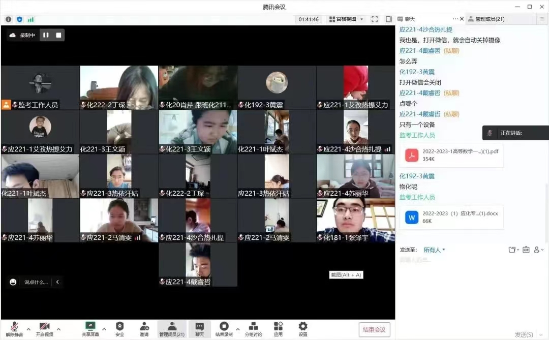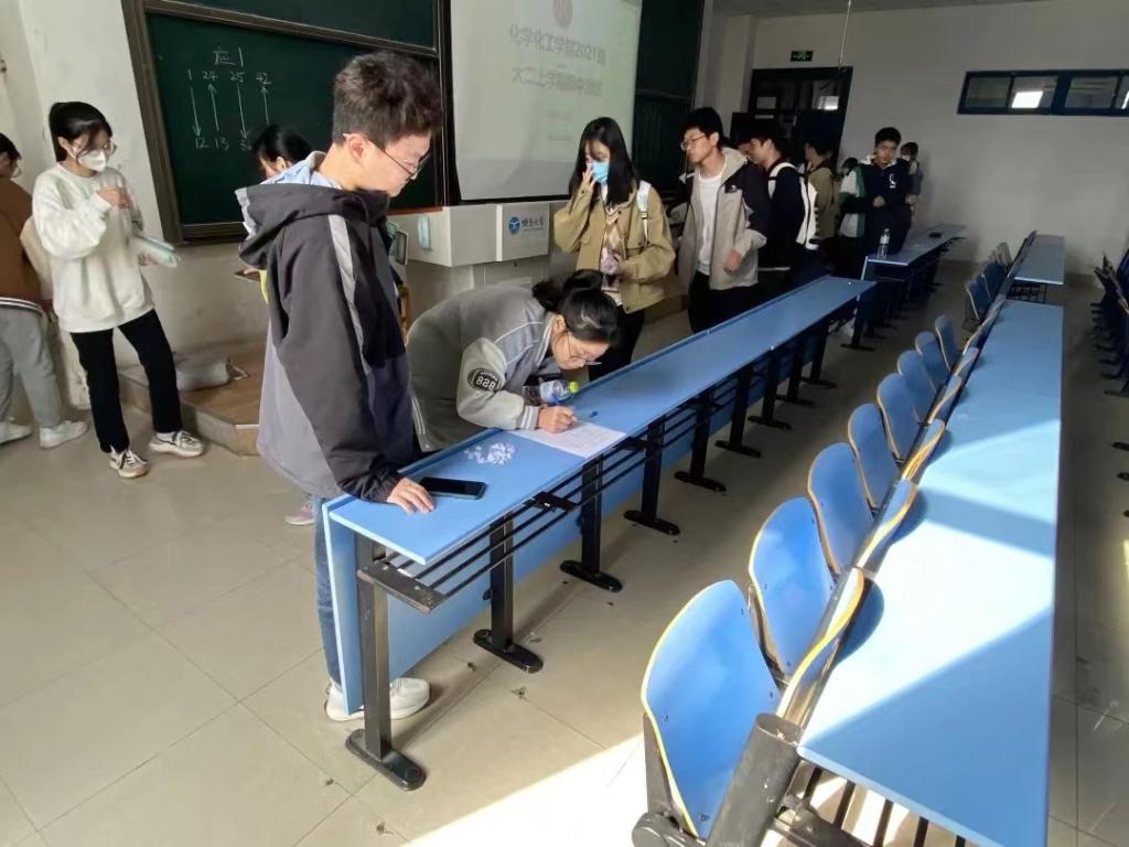 10月29日,在综合楼和五教,化院组织了2022—2023学年秋季学期期中考试,考试科目包括《高等数学》《普通化学原理》《物理化学》等。经公司学工组与相关教研室、任课老师充分沟通后,本次考试仍采取“无人监考”“员工交换阅卷”模式,以2021级和2022级全体员工为主。考虑到疫情导致部分同学不能返校,本次“无人监考”线上线下同步进行。