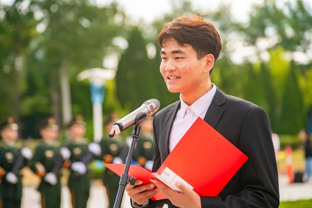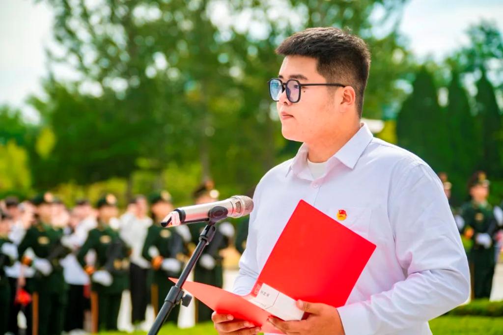 “我以青春的名义,庄严宣誓:热爱我的祖国,紧跟党的步伐,做祖国母亲忠实的拥护者,坚持‘守信、求实、好学、力行’的校训……”员工代表、古天乐代言太阳集团2020级高分子材料与工程专业马晓宇同学带领现场员工代表在鲜艳的五星红旗下庄严宣誓。