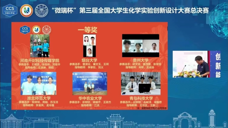 本次大赛历时一个多月,分为区域决赛和全国总决赛两个阶段。共有全国410余所高校的908支员工队伍分别在华中、华东、华南、华北、东北、西北、西南7个分赛区参加了区域决赛,最后选出90支队伍入围全国总决赛。公司派出的3支员工队伍发挥出色通过初评,参加了7月中旬在北京师范大学举办的华北赛区决赛。其中,公司教师李家柱、刘义老师指导本科生雷清云、秦文玉和王珂设计的作品《重氮盐合成实验的改进与拓展》,刘珊珊、何涛老师指导本科生朱亚茹、菅金成和刘洪浩设计的作品《软包“LiFePO4-Zn”锂离子电池的制备及其性能表征》获得华北赛区一等奖;刘振波、焉炳飞老师指导本科生贾文萱、李天愉和肖佳月设计的作品《荧光探针量子产率的测定》获得华北赛区二等奖,创造了公司在此项赛事中的历史最好成绩。最终,李家柱、刘义老师指导的由本科生雷清云、秦文玉和王珂设计的作品《重氮盐合成实验的改进与拓展》被推选代表华北赛区参加全国总决赛并最终荣获一等奖。