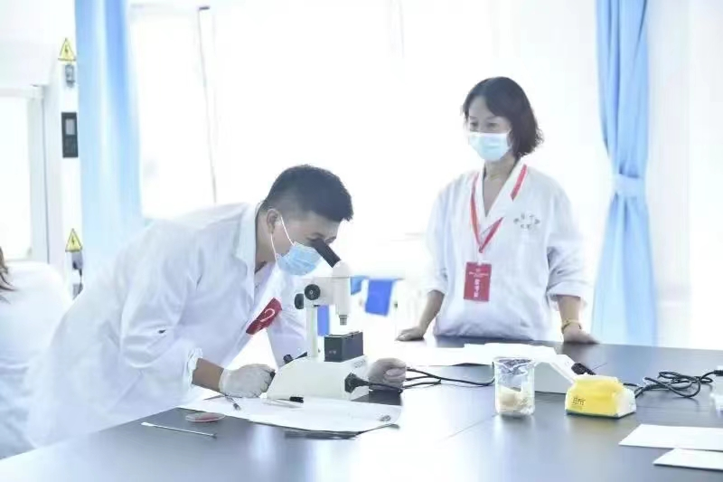 (参赛员工正在进行实验技能考试、公司化院老师在监考)