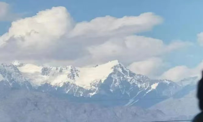 从孔孟故里济宁到十三朝古都洛阳,从大唐不夜城西安到金城兰州,感受不同的风土人情,不同的民俗风貌。一路上,火车行驶过渭水、黄河,几次穿过河道的山谷,也行驶在一望无际的荒原之上,间或有牛羊出现。西望喀什支教队从山东出发,途经五岳至尊泰山,在即将到达喀什之前,路过了白雪皑皑的天山。
