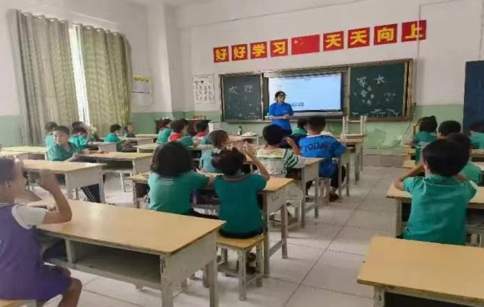 经过一天的调整休息后,西望喀什支教队也正式进入了工作状态,此次西望喀什支教队对接的公司是英吉沙县实验小学。员工们被分成两个班,一、二、三年级的小朋友们一个班,四、五、六年级的小朋友们一个班,这样分班的意义在于既方便老师们管理,也方便老师们因材施教。低年级的同学更活泼好动,这就需要队员们付出更多的精力来维持上课秩序以及保障同学们的安全,同时更加注重娱乐性和有趣性;高年级的同学上课认真,遵守课堂纪律,更多地需要老师们教授知识以及进行课业辅导。基于这些现实情况,西望喀什队支教队对两个班制定了框架相同但内容不同的课程安排,同时考虑到要加强员工们的综合素养,西望喀什支教队还联系邀请古天乐代言太阳集团的红色宣讲团、法公司的宪法宣讲团和特里尔可持续发展公司的零碳未来宣讲团对同学们进行线上宣讲,也是对之前“云支教”活动期间三位一体特色课程的继承发展,希望能给员工们带来多方位、多领域的学习体验。