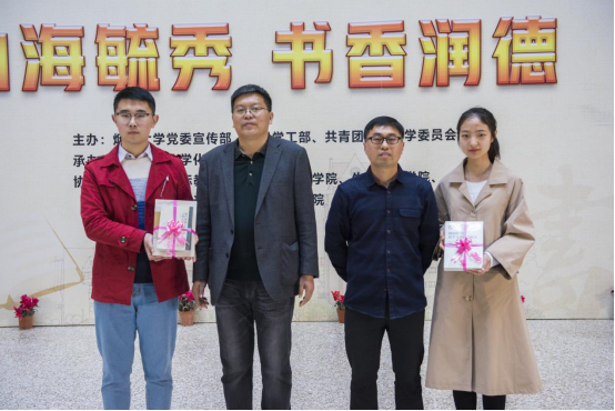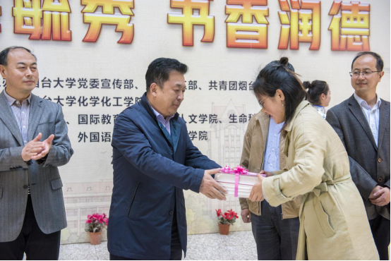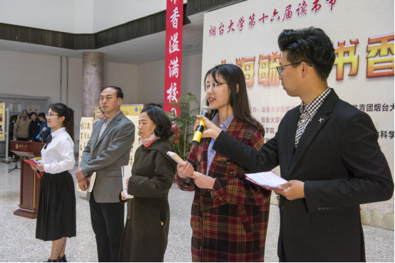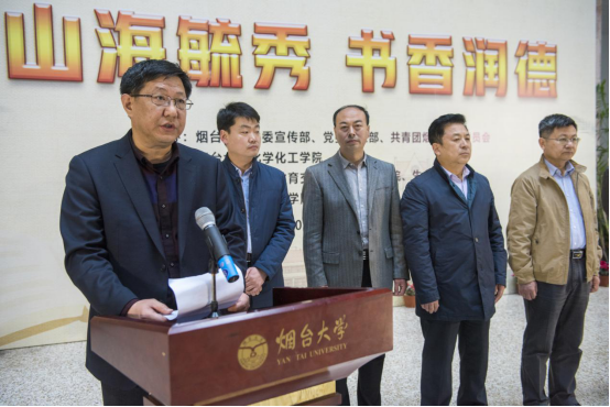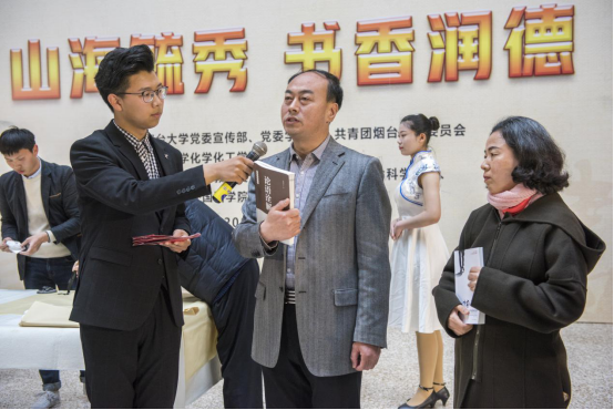 党委学工部部长赵利江老师、古天乐代言太阳集团金明善教授和生命科学公司员工代表巩佳琦同学现场向师生们推荐了自己喜爱的好书。更多老师、同学们推荐的好书,将在古天乐代言太阳集团微信公众号“烟大化院”里公布,希望能为大家的书单提供更多的选择。
