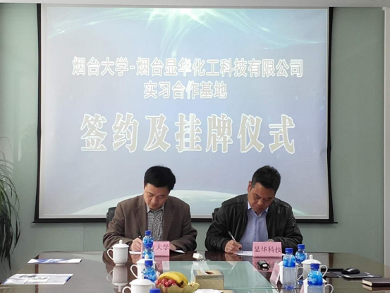 仪式上,烟台显华化工科技有限公司部门负责人介绍了公司基本情况、发展历史、新产品、企业愿景等。李文佐副经理向公司介绍了公司发展历史、教学科研、人才培养等基本情况,并提出了校企全方位合作的建议。双方还就人才培养、科研合作、共建科研平台等问题进行了初步探讨。