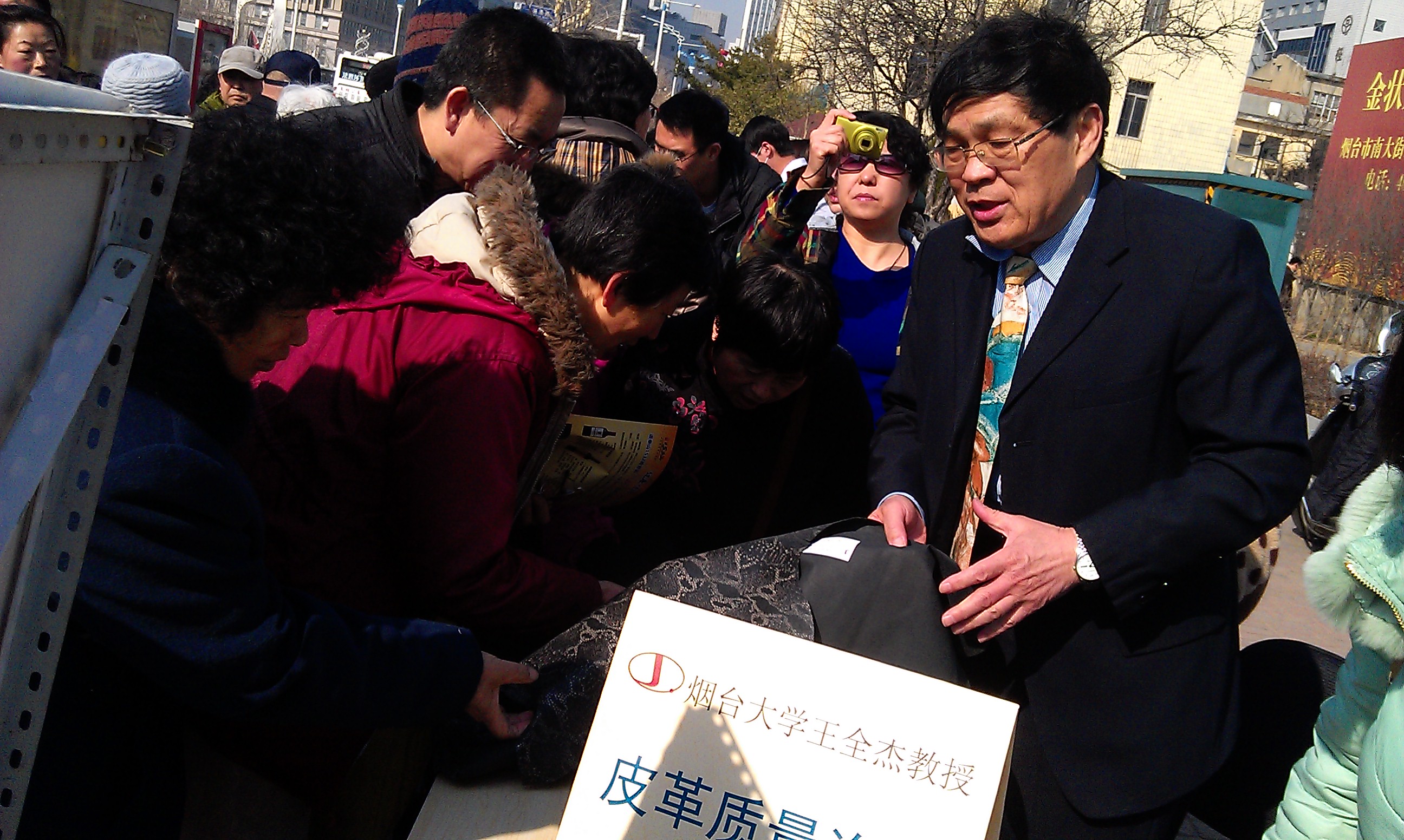 烟台2014国际消费者权益日纪念活动在市文化中心广场对面举行。公司王全杰教授和其带领的团队,由皮革与蛋白质研究中心的2名老师和3名研究生和2名工作人员组成。