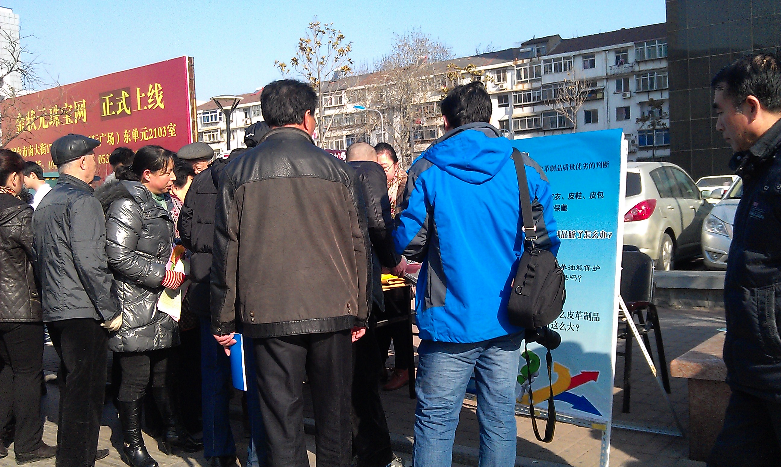 早八点,公司团队刚到活动现场就被市民围的水泄不通。由于消费者的皮革知识相对缺乏,皮具商品历来是消费者投诉的热点。本次活动公司“315团队”自带皮革样品,更直观的传授消费者辨别皮革质量的知识和皮革保养护理小窍门,在最短的时间帮助消费者如何鉴别真假皮。