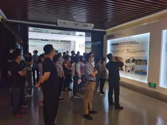 在开发区城市展示中心一楼,大家跟随讲解员了解烟台从开埠以来,烟台社会经济重大变迁。烟台开埠后,港口贸易和民族工商业发展起来,其中,以1892年成立张裕酿酒公司、1915年成立的宝时造钟厂(我国第一家机械造钟企业)、东亚罐头公司和1930年成立的程明造锁厂(我国第一家弹子锁厂)为代表,烟台由此成为我国近代公演发祥地之一。新中国成立后,烟台工业发展较快,民族工商业焕发新的生机,张裕葡萄酒、北极星钟表、三环锁、飞轮牌罐头等产品名扬海内外;许多新建的企业平地崛起,冷冻机、合成革等产品享誉四方,烟台逐步形成门类齐全、特色鲜明的工业体系。