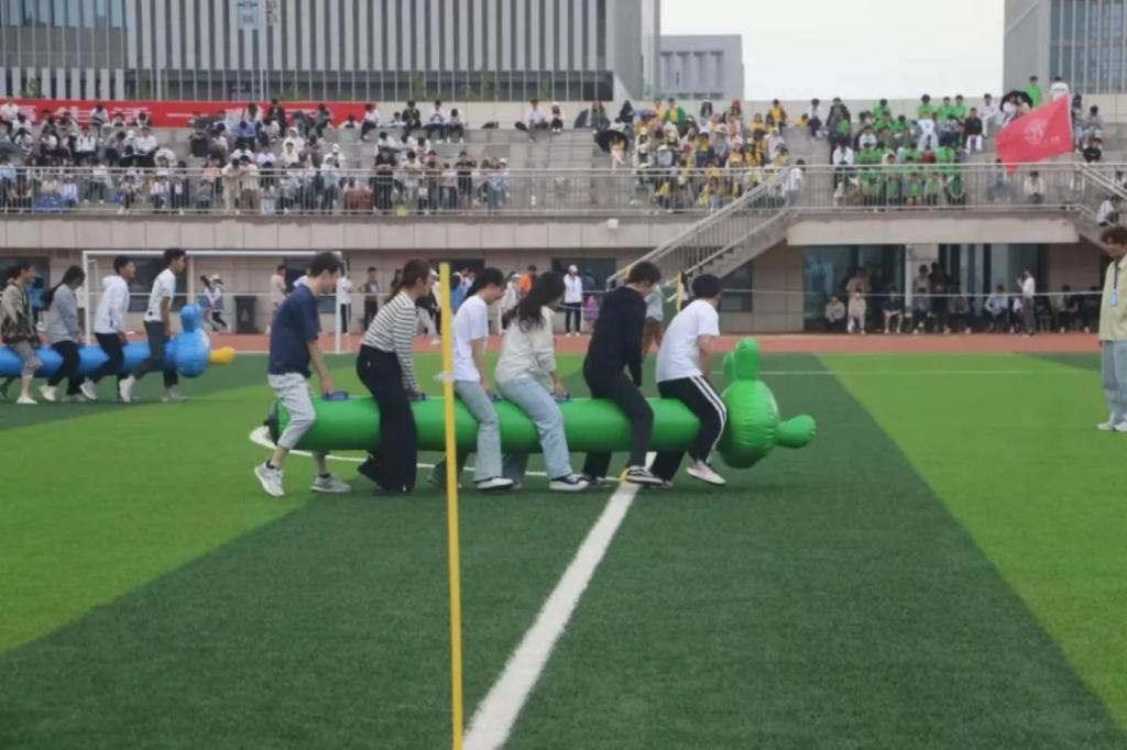 化院老师们在进行“毛毛虫”趣味比赛。