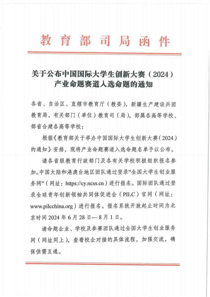 关于公布中国国际老员工创新大赛(2024)产业命题赛道入选命题的通知